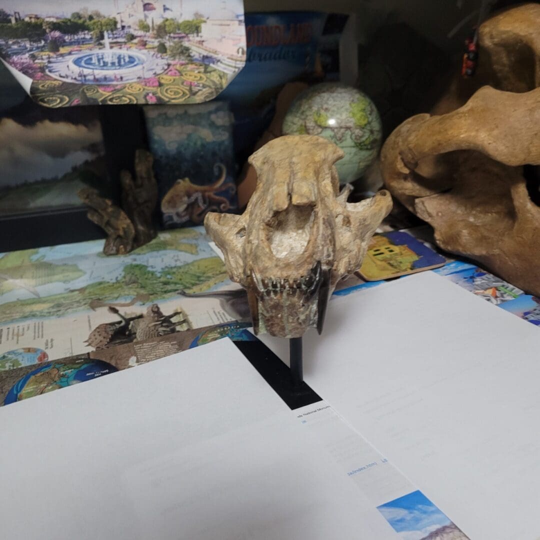 It was so great it was left in volcanic ash in between the eyes and back of lowers. The lowers are perfect with almost all parts exposed. I really can’t say enough about this cat so here is link that explains the formation https://en.wikipedia.org/wiki/John_Day_Fossil_Beds_National_Monument and https://traveloregon.com/things-to-do/destinations/parks-forests-wildlife-areas/john-day-fossil-beds-national-monument/