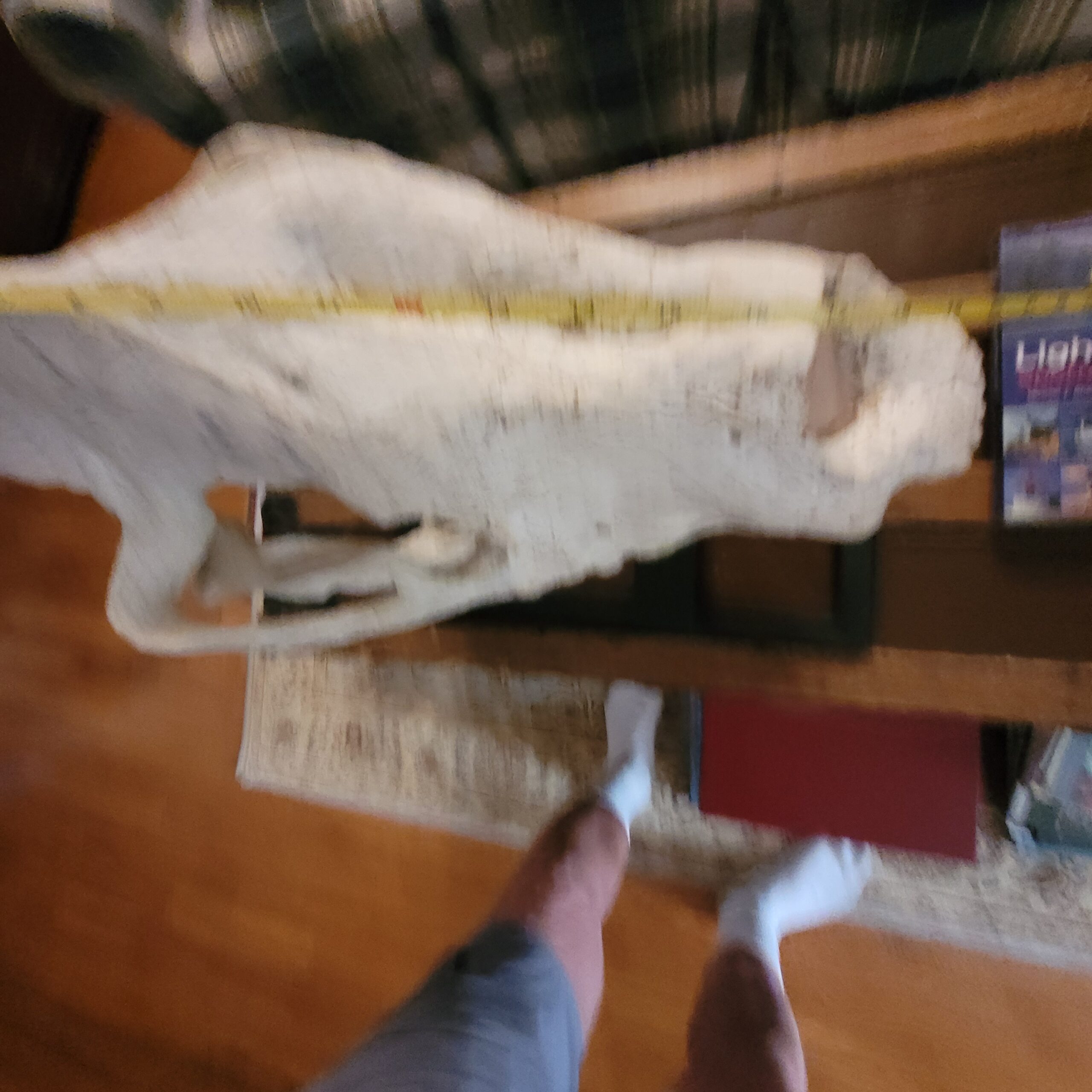 Description: The Largest Beardog Known MORE THAN RARE Extinct Species of Bear- Dog of Miocene existing for a few million years from 15-8 MILLION years ago . It was assigned to amphicyonids. While initially related to bears it is now found they may be basal caniforms. This is one of the most unusual carnivore. Close to A. giganteus in Europe but larger and much rarer. IN fact if you look it up the research had no full skulls and fragmented teeth. I don’t even know of any others complete. The teeth are huge as is the skull but since we have researched only fragments its unknown on weight and lenth but from the 21” head size I would estimate at least 15 ft skeletons as 17 inch American lion skulls are 13 ft long and weighs at least a ton . It combines features of canine and feline predators . It resembles part dog and bears just enormous with a flexible cat-like body . These bear-dogs with long limbs and specialized in chasing down prey on the open plains. This is of great scientific importance to everyone, and unlimited value . It wasn’t even described until 2018 so its very ,very new discovered species .