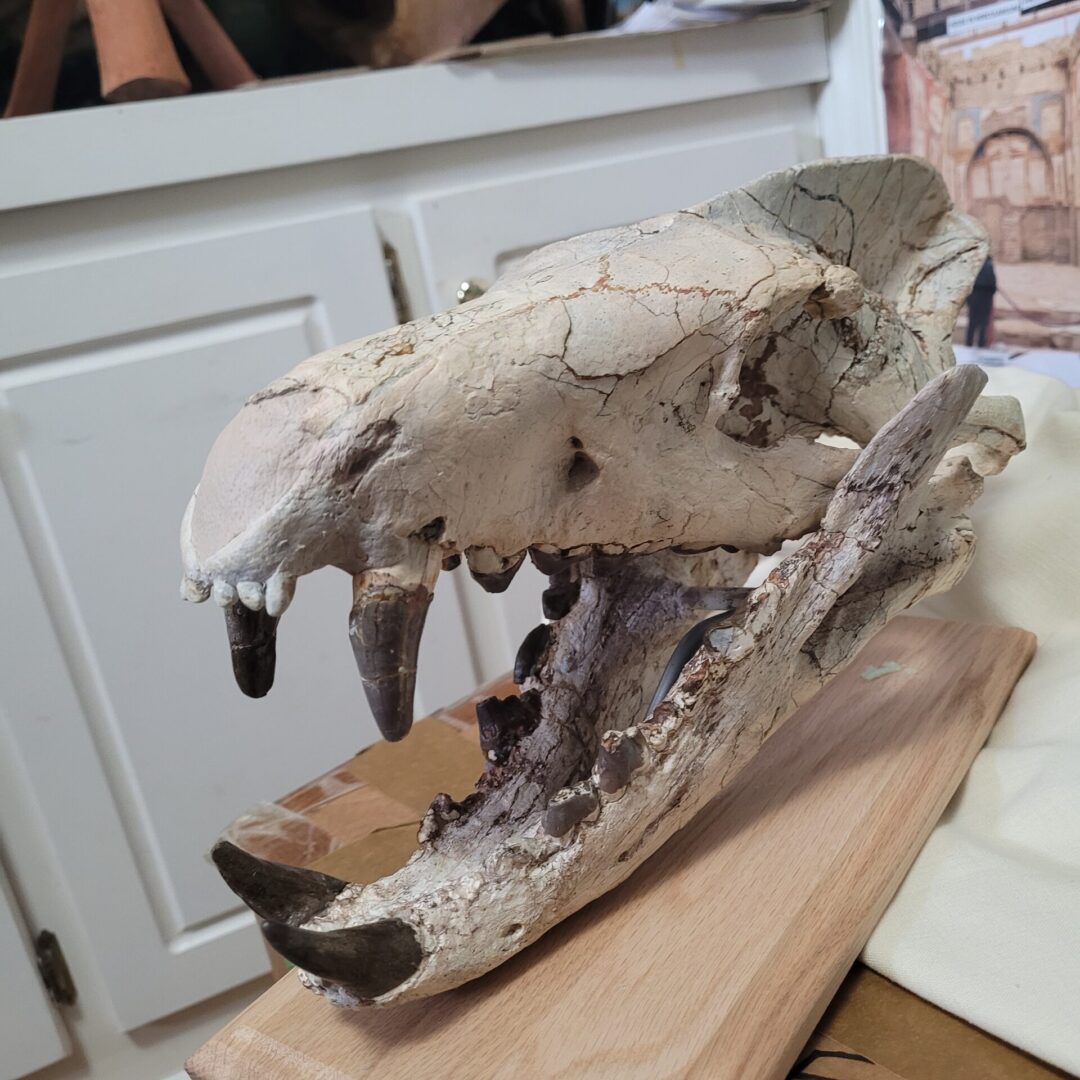 SUPER LARGE Rare 14.5″ Premium Colorful Hyaenodon Horridus Open MOUTH SKULL- SOLD